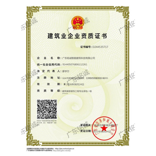 廣東銘誠智能建筑科技有限公司成立于2008年,公司注冊資金為6000萬元,集辦公裝修、酒店裝修、家庭裝修、軟裝裝飾、娛樂場所裝修為一體的裝飾公司,率先提出“創(chuàng)造現(xiàn)代人文空間,挑戰(zhàn)業(yè)界高峰”的雄壯口號(hào),并以此為目標(biāo),完成了一大批具有影響力的大型公裝工程:其中包括廣州國際中醫(yī)藥展貿(mào)中心、奧飛澄海音樂廳、澄海區(qū)國家稅務(wù)局、澄海興信小額貸款、澄海潮商村鎮(zhèn)銀行、汕頭龍湖賓館、澄海豪庭大酒店、御園國際飲食城、澄海福晉軒酒家、享樂匯保健有限公司、假日商務(wù)酒店、尚景康園物業(yè)、星輝車模股份有限公司、奧飛動(dòng)漫有限公司、香港國際玩具、汕頭萬基貿(mào)易有限公司、泰興源實(shí)業(yè)有限公司、汕頭皇冠玩具有限公司等;家裝工程包括南澳黃金海岸整幢的精裝房、中信華府、富春華庭、金信鳳凰名城、凱旋花園、中信金城、柏嘉半島、陽光海岸、金葉島等高等住宅。 ? 廣東銘誠智能建筑科技有限公司經(jīng)過十余年的建筑裝飾裝修施工領(lǐng)域項(xiàng)目積淀,于2018年2月取得“建筑裝修裝飾工程專業(yè)承包二級”、“建筑機(jī)電安裝工程專業(yè)承包三級”、“建筑工程施工總承包三級”、“施工勞務(wù)不分等級”、“安全生產(chǎn)許可證”等專業(yè)資質(zhì),并于2021年8月建筑裝修資質(zhì)正式升級為“建筑裝修裝飾工程專業(yè)承包一級”。這是對企業(yè)規(guī)模、工程業(yè)績、管理水平、誠信表現(xiàn)的肯定,是企業(yè)實(shí)力與能力的展現(xiàn)。 ? 公司每一項(xiàng)工程都始終堅(jiān)持“精美設(shè)計(jì)、精心施工、確保合同承諾;勤奮開拓、追求突出、創(chuàng)造時(shí)代精品”的質(zhì)量方針,力爭做一項(xiàng)工程,樹一座豐碑。 ? ?銘誠擁有一支由專業(yè)的營銷精英和客戶顧問組成的營銷隊(duì)伍,勤奮、敬業(yè)的每一位銘誠員工將本著“贏在別人休息時(shí)”的專業(yè)精神,為客戶提供全程營銷及售后服務(wù),確保客戶的合法利益,提供體貼周到的服務(wù),做到讓顧客滿意。 ? 銘誠擁有一批資老牌室內(nèi)環(huán)境設(shè)計(jì)師,以“現(xiàn)代人文空間”為設(shè)計(jì)理念,為客戶提供人性化、差異化、智能化的室內(nèi)環(huán)境設(shè)計(jì)服務(wù),準(zhǔn)確的將人性化特點(diǎn)與室內(nèi)環(huán)境相融合,達(dá)到了“現(xiàn)代人文空間”的和諧統(tǒng)一。 ? ? ? ?自主創(chuàng)新、視社會(huì)責(zé)任為己任的精神使我們在發(fā)展的道路上屢獲殊榮:不斷提升的銘誠品牌知名度和美譽(yù)度,靠的是優(yōu)質(zhì)的產(chǎn)品,靠的是不斷提升的營業(yè)績,靠的是國內(nèi)的核心技術(shù)和誠信的服務(wù)。相信通過銘誠人的努力,銘誠將會(huì)不斷以新的姿態(tài)為提升廣大消費(fèi)者的生活質(zhì)量做好服務(wù),為中國裝飾行業(yè)設(shè)計(jì)創(chuàng)新做出突出貢獻(xiàn)。 ? ? “忘掉競爭、共